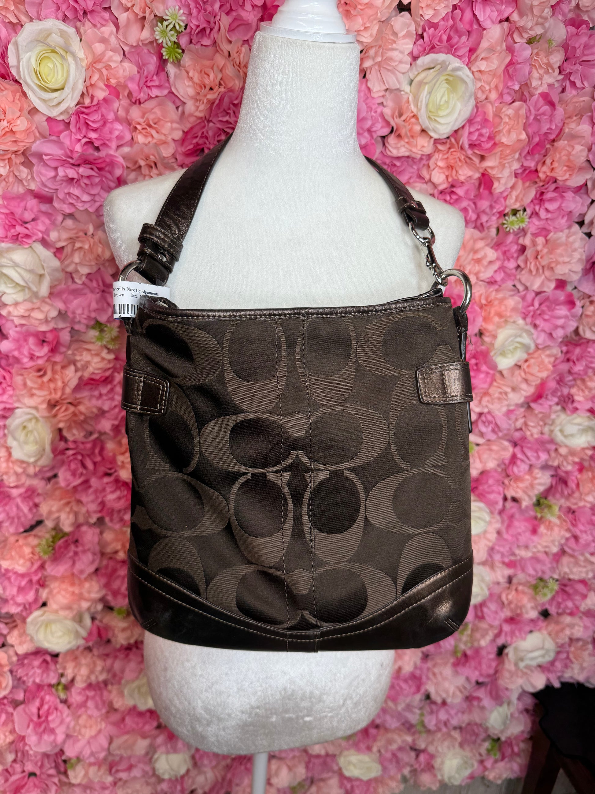 Brown Coach Crossbody With Silver Chain Detail